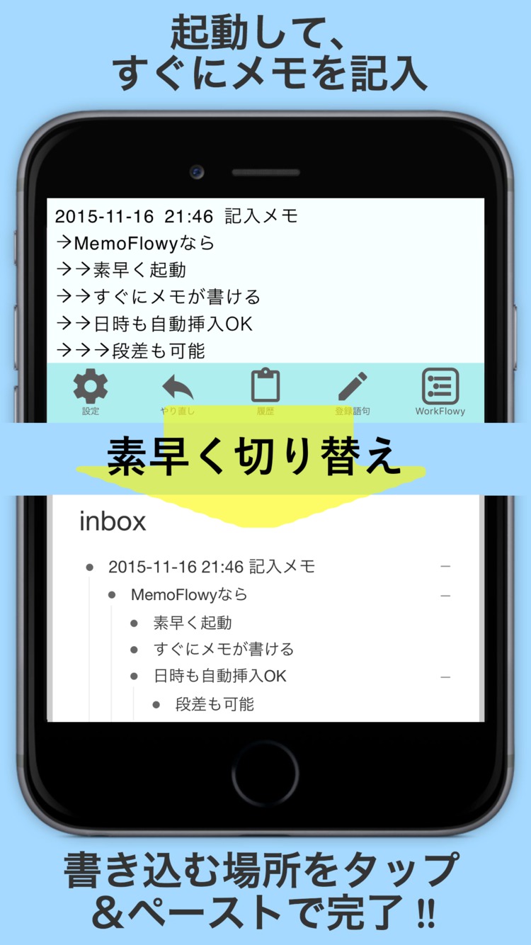 ぱっと立ち上げ、さっとメモを書き、ポンとWorkFlowyに放り込むことができます。