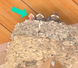 夜は別のねぐらへ帰る親鳥ですが、早朝からせっせとエサを運んでくれています。糞を数えてみると朝7時〜夜7時までで25、6個ありました。(多いのか少ないのかは分かりませんが・・・^^;) 明日はきっと飛び立って行くでしょう。 |